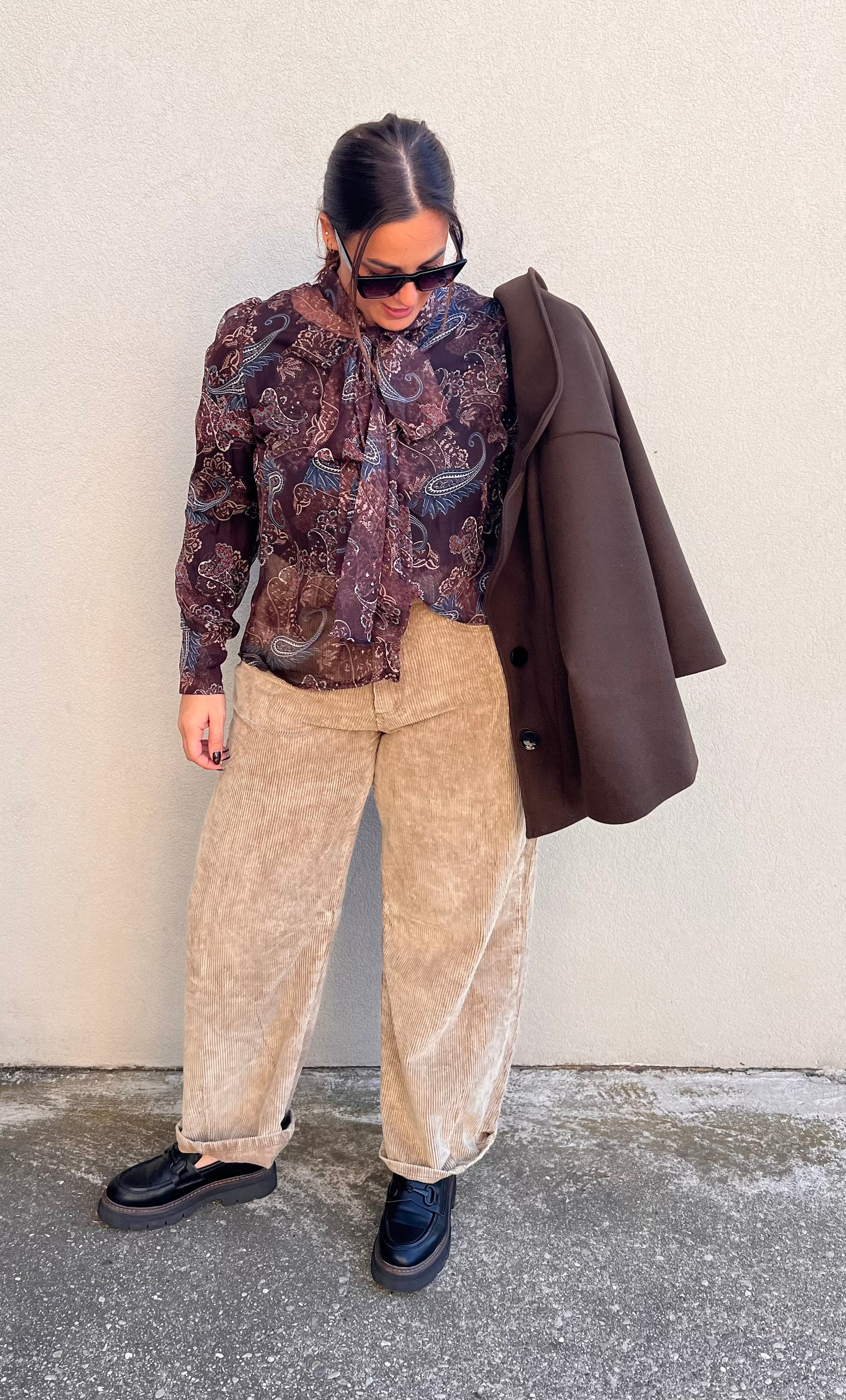 Camicia in fantasia con bottoni e fiocco