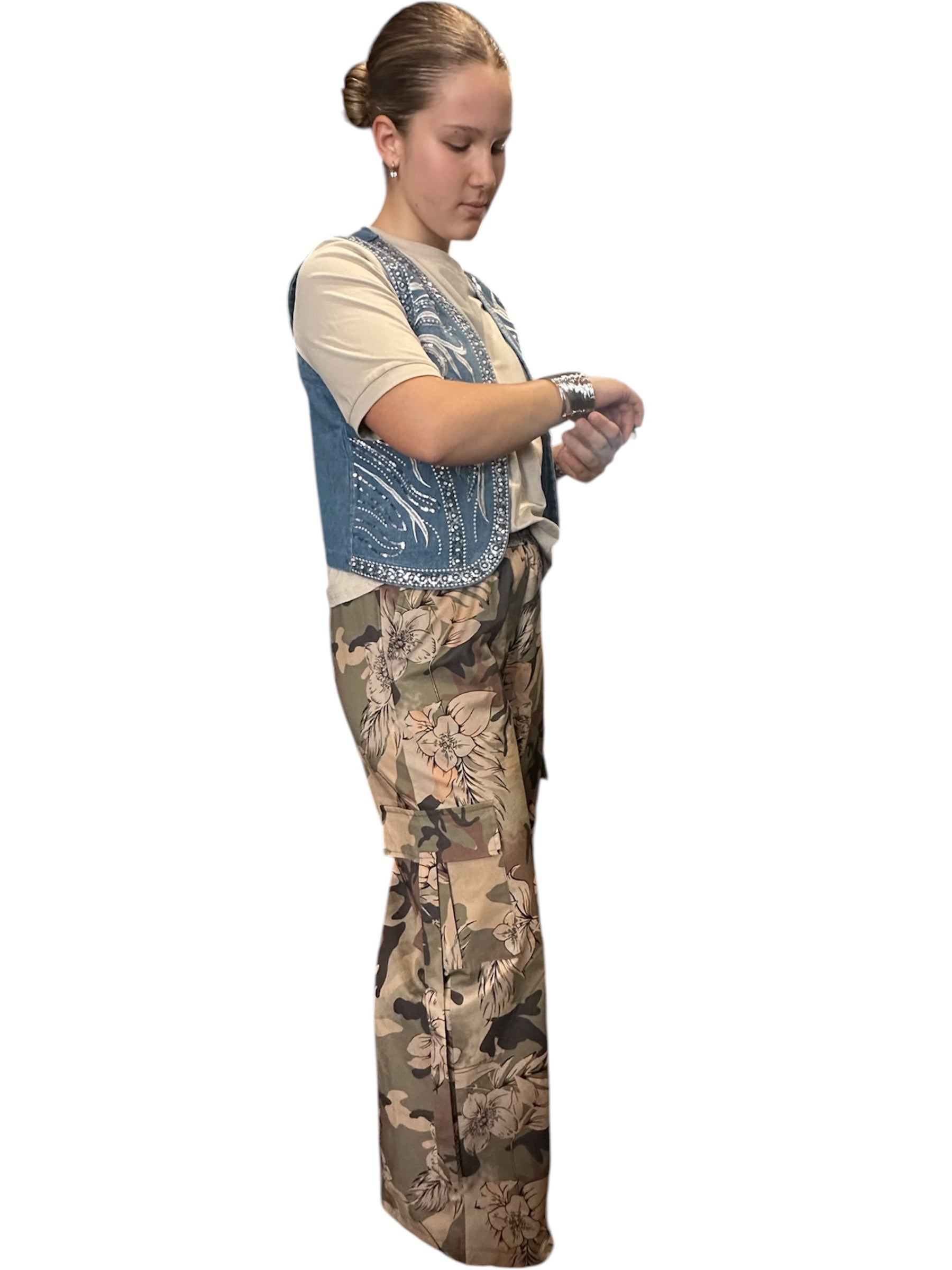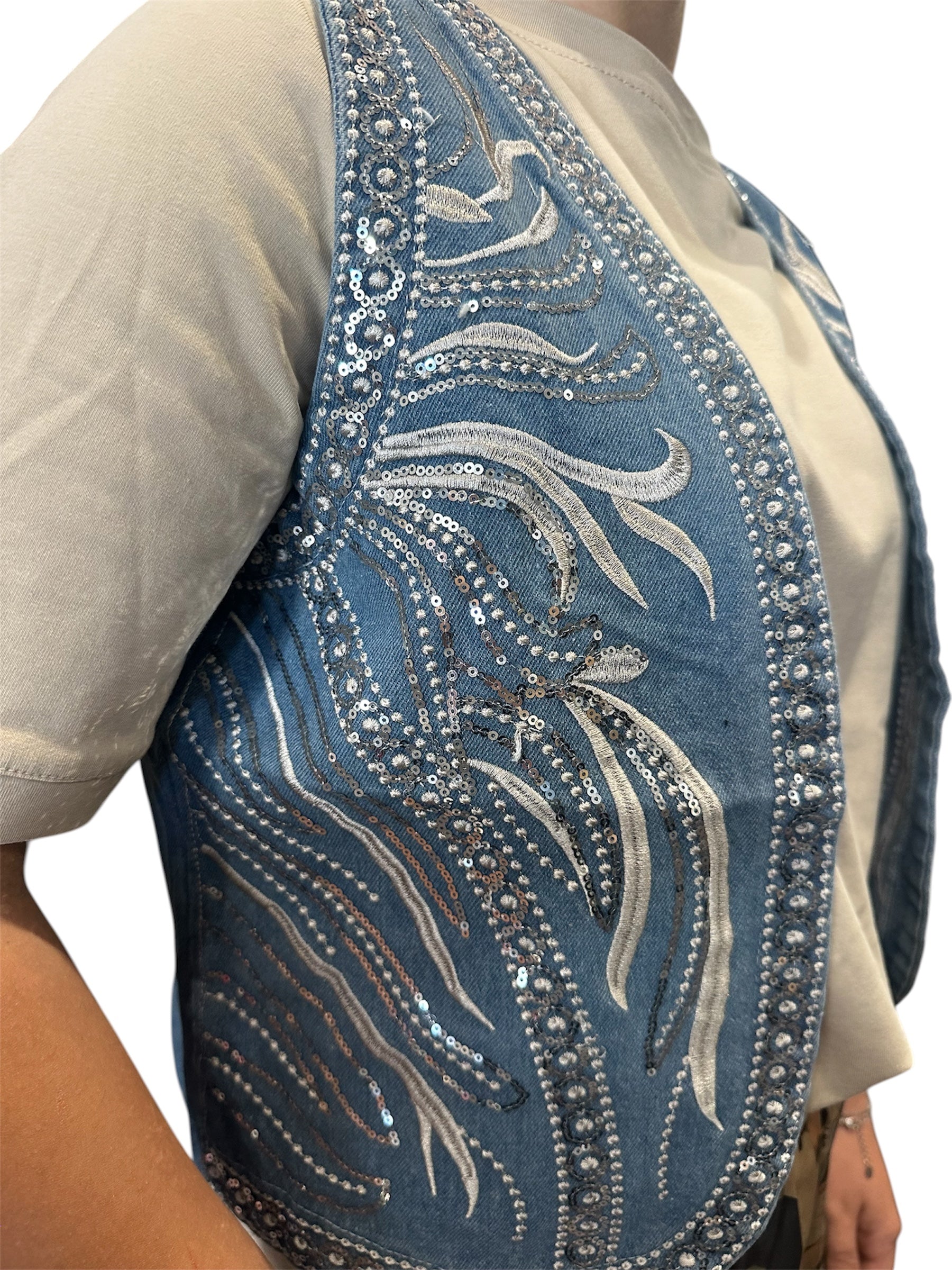 Gilet in jeans con micro paillettes e ricami, non foderato