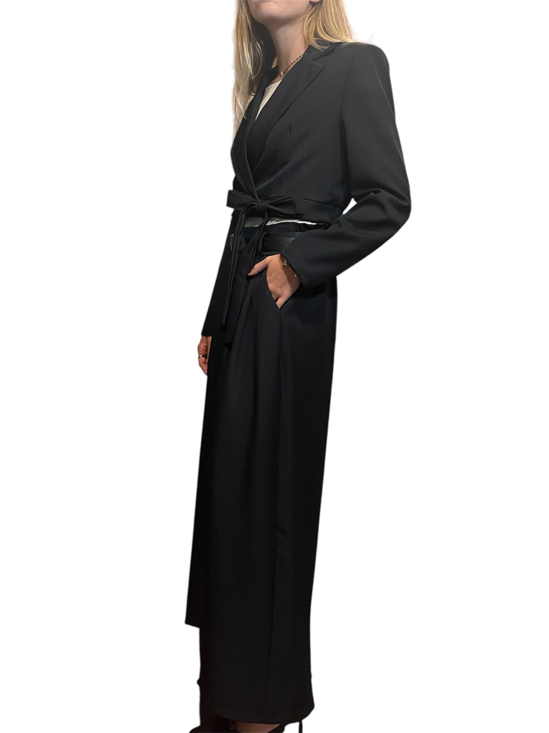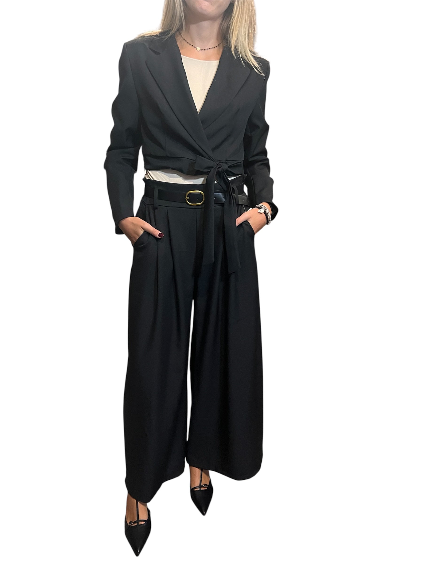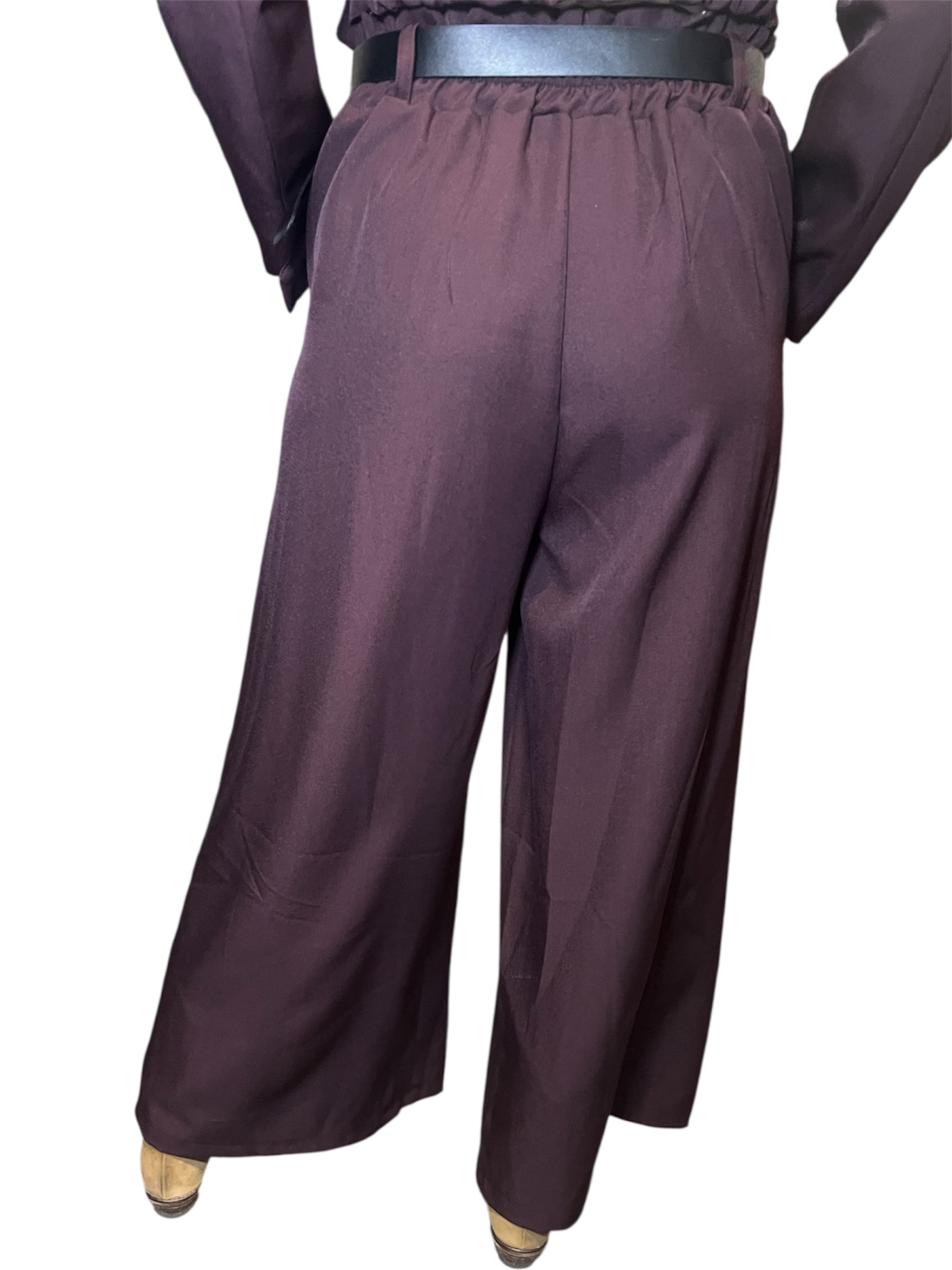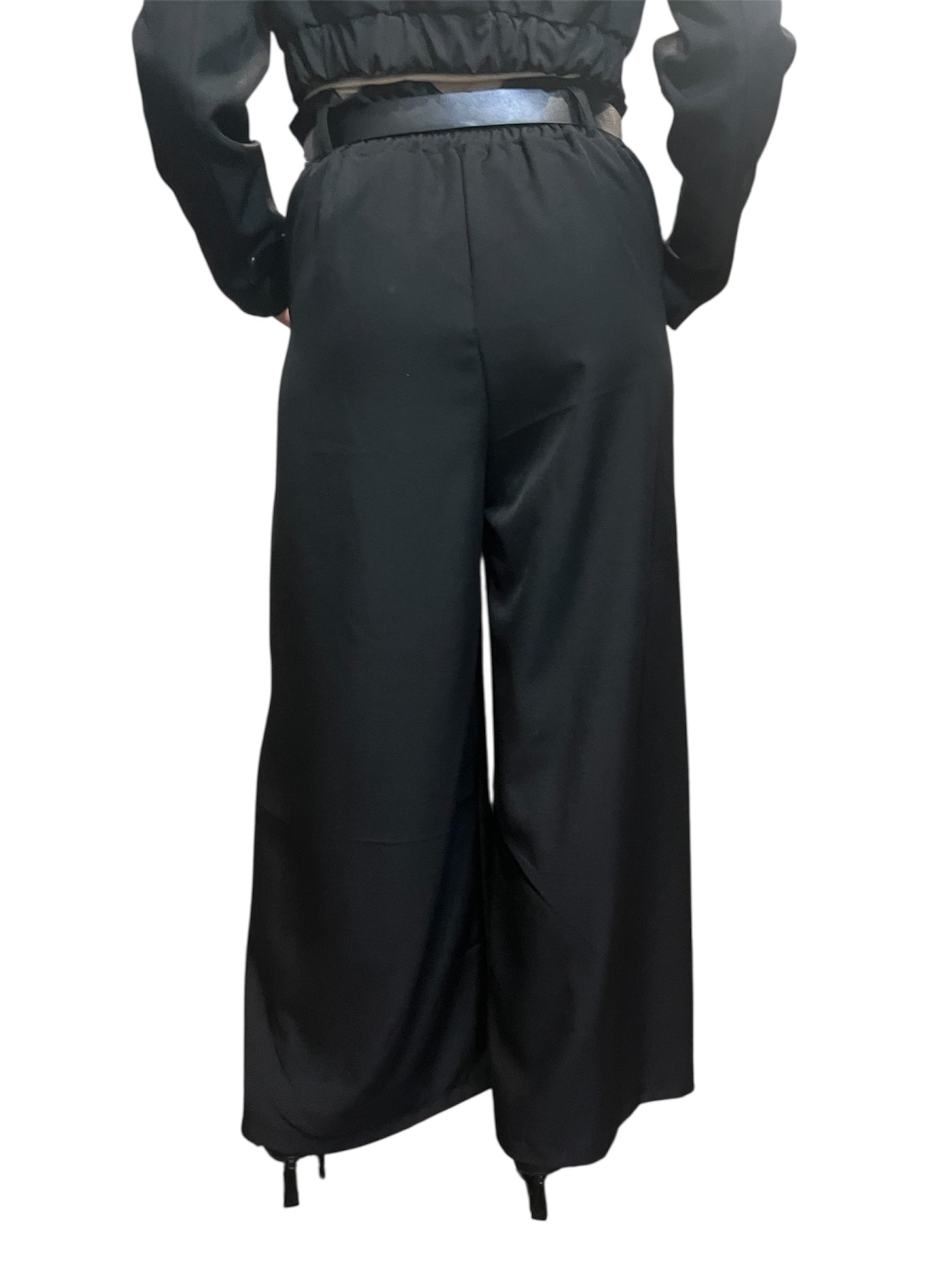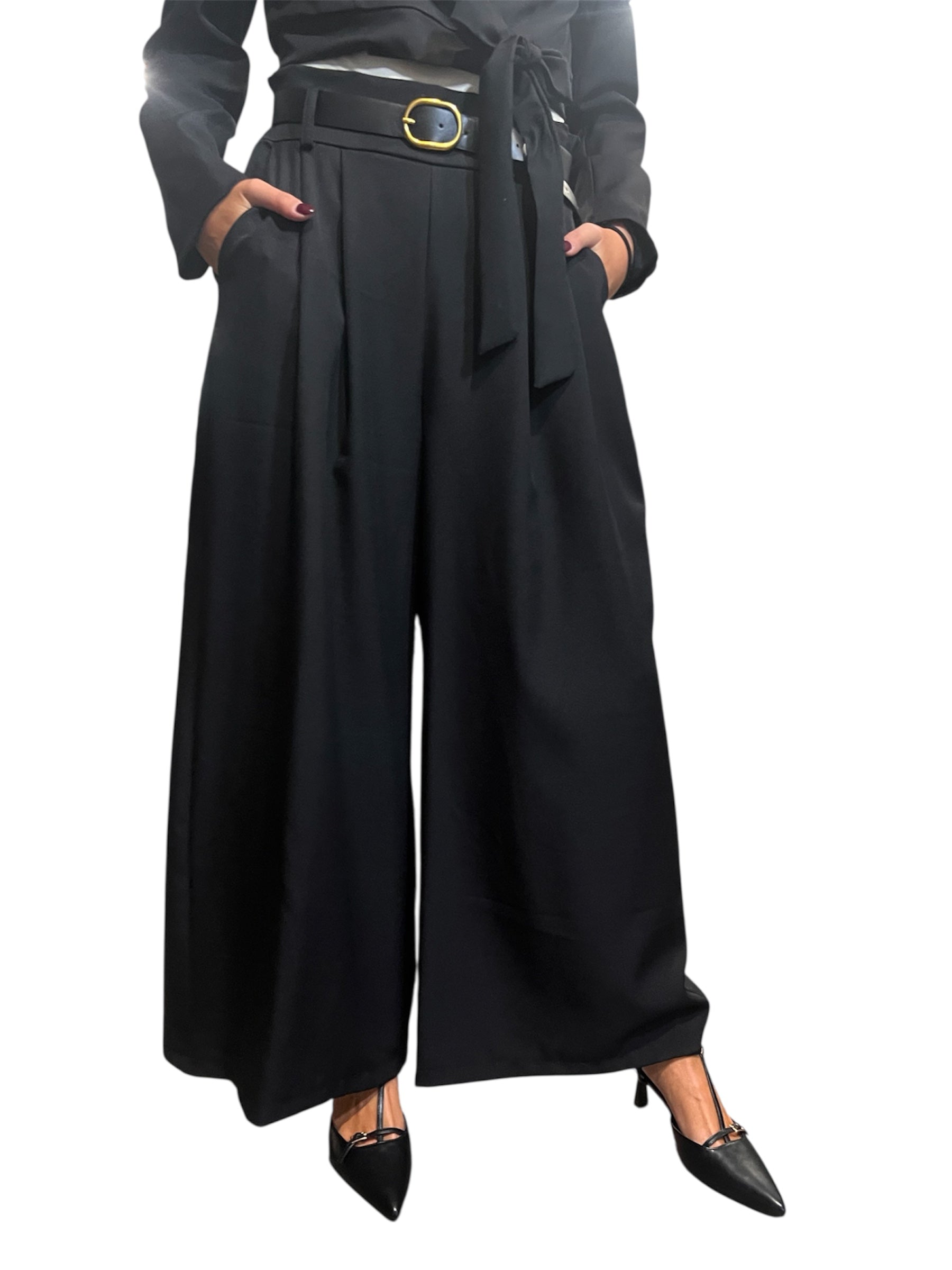 Pantalone elegante a palazzo con pence e tasche laterali, elastico in vita nella parte dietro